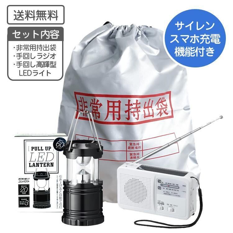 持ち出し袋・ LEDランタン・手回し充電ラジオ